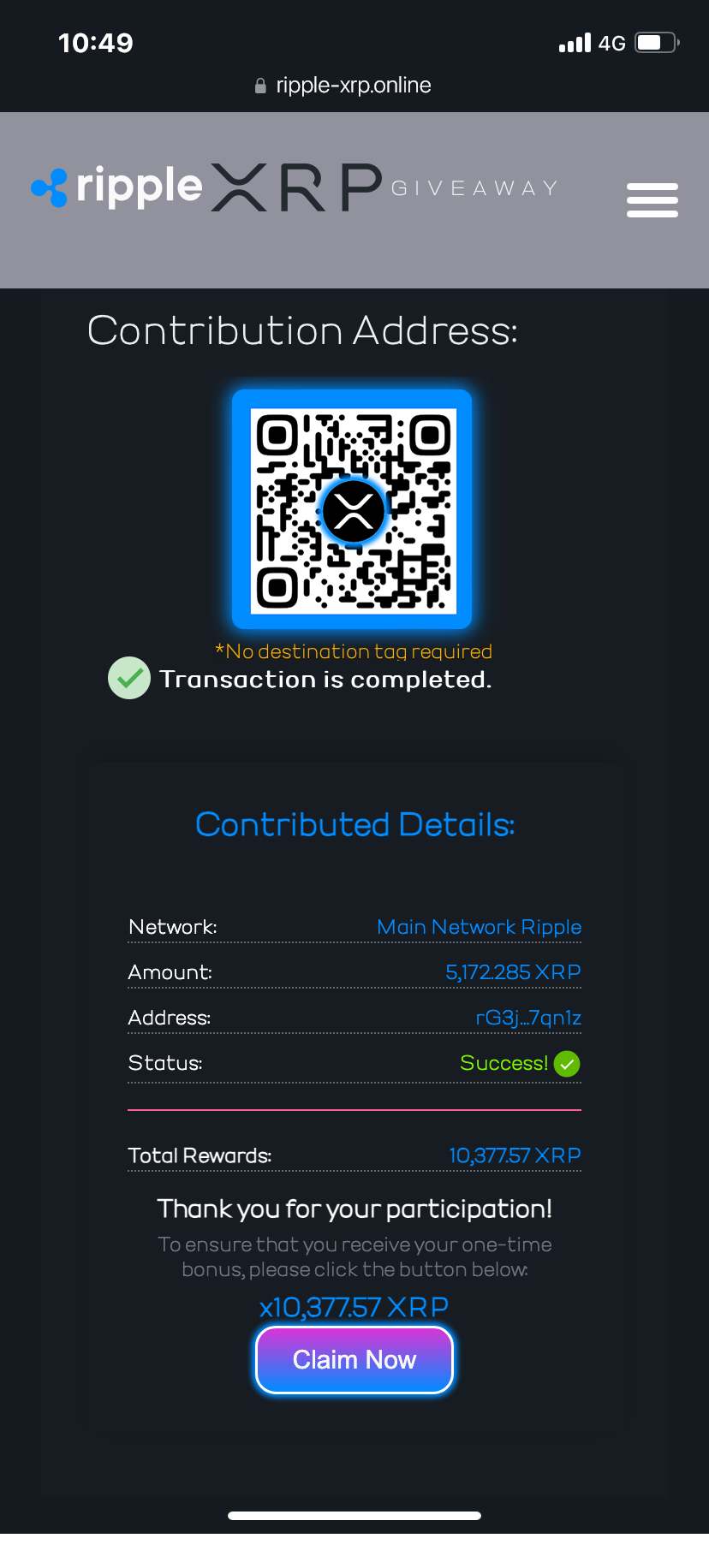 Important: Always confirm the official Ripple event page and wallet address before sending any funds. Scams are common — stay vigilant and ensure you're participating in the legitimate giveaway.